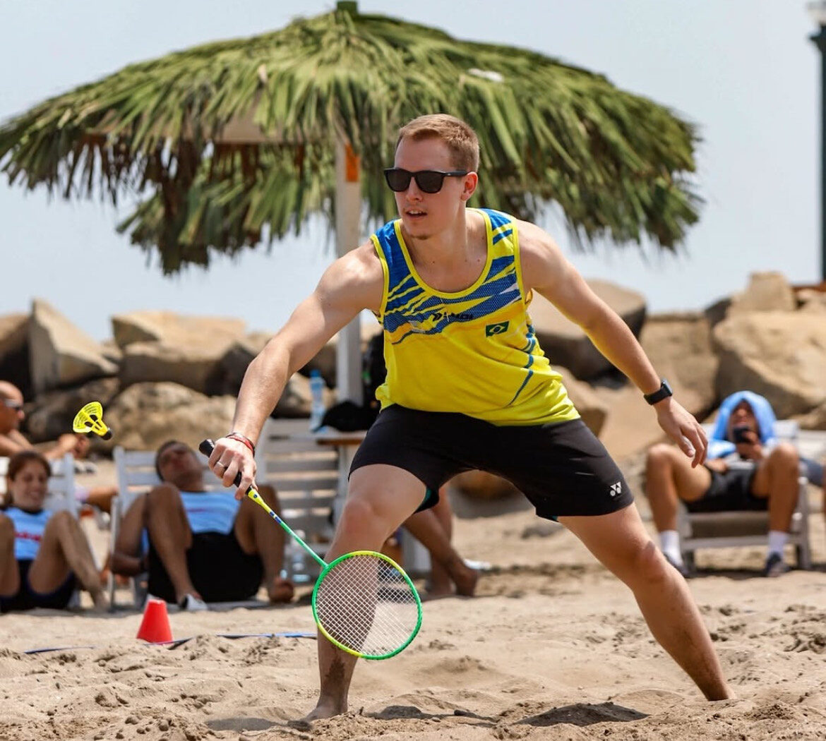 O atleta do Paulistano e da Seleção Brasileira de Badminton, Matheus Voigt, é um dos nomes que vêm ajudando a construir a trajetória da modalidade no país. Disputou em 2023 o Pan-Americano de Airbadminton, na Jamaica, primeiro torneio oficial da equipe brasileira. “A Confederação apresentou a modalidade pra gente e perguntou quem gostaria de participar. Tivemos contato poucas semanas antes, com treinos rápidos para entender as diferenças e fomos competir”, lembra.